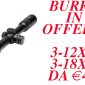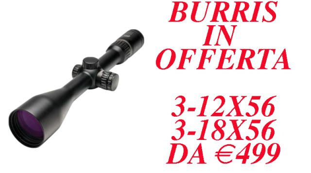 SPECIALE PROMOZIONE DAL 16 LUGLIO A 31 LUGLIO SOLO SENZA PERMUTA DI USATO BURRIS FOUR XE 3-12×56 MM – RET 4A-I €499 BURRIS SIX XE 3-18X56 M M – RET E3-RFP ILL €699