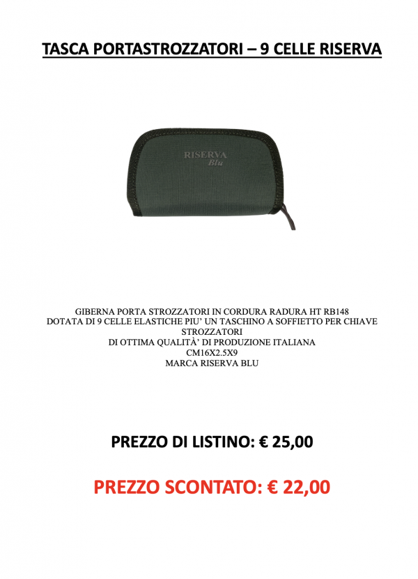 RISERVA BLU – TASCA PORTA STROZZATORI – 9 CELLE ELASTICHE E PORTA CHIAVE