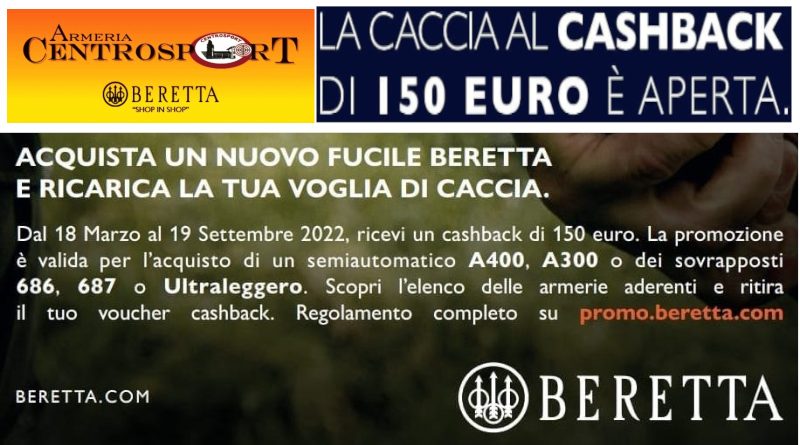 Dal 18 marzo al 19 Settembre 2022 acquista un nuovo fucile Beretta e ricevi un cashback di 150 Euro.